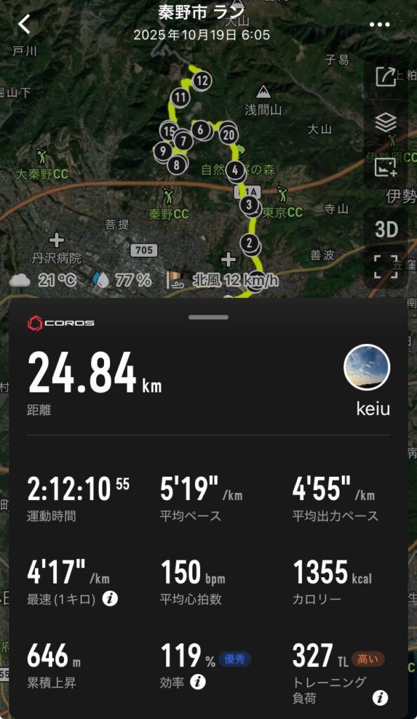 その先の年明け1月の館山若潮マラソンに向けても、ここまで峠走を繰り返し夏~秋までやったことはないので(6月からこの日までで6回)、積み重ねがモノをいうフルマラソンに向けても楽しみな感じ。