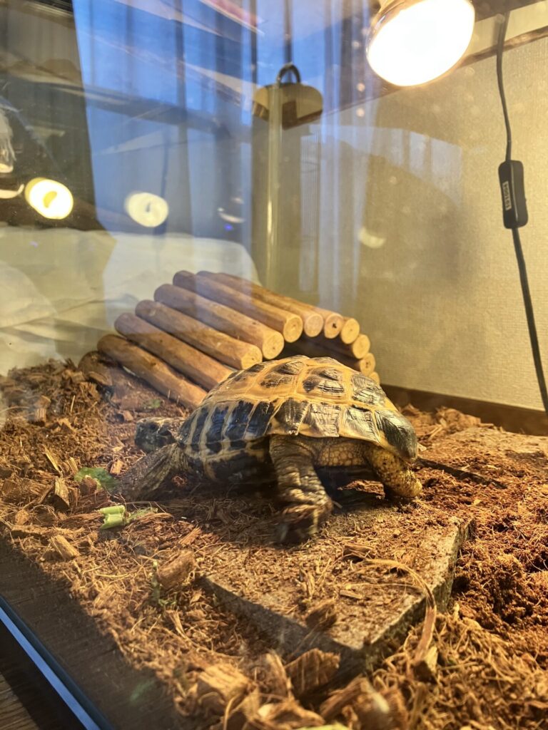 バスキングライトも稼働し始めたら、早速バスキングライトの下へ行き体を温めているリキ男さんとずんさんを見ていると「あぁ、やっぱり寒かったのね・・・」と思いました。