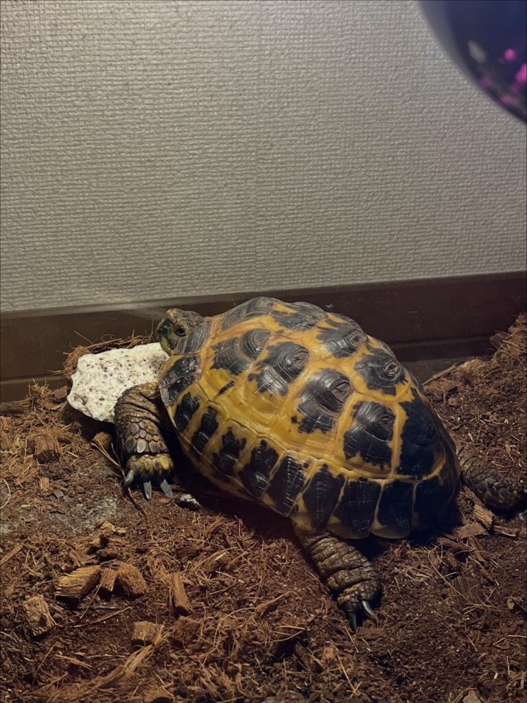 また、保温電球を稼働させるということはケージ内の湿度はカラカラになってしまうので、保湿にも気を配る日々。