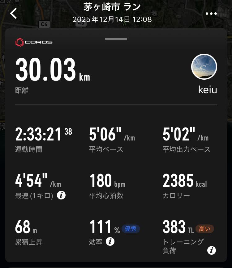- 12/17(水):8kmちょっと速く走るのと10kmジョグ