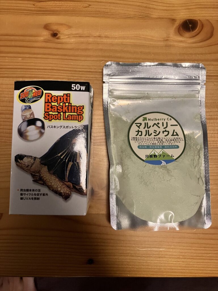 かなり長期に使っていたから寿命かなぁと思いつつ、リクガメお道具箱(飼育用品を入れている箱)内のバスキングライトに付け替え。これで予備のバスキングライトがなくなったので、買い足しです。