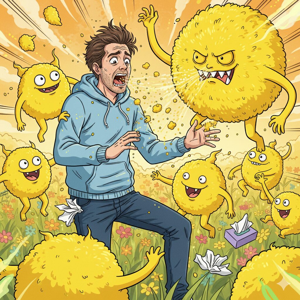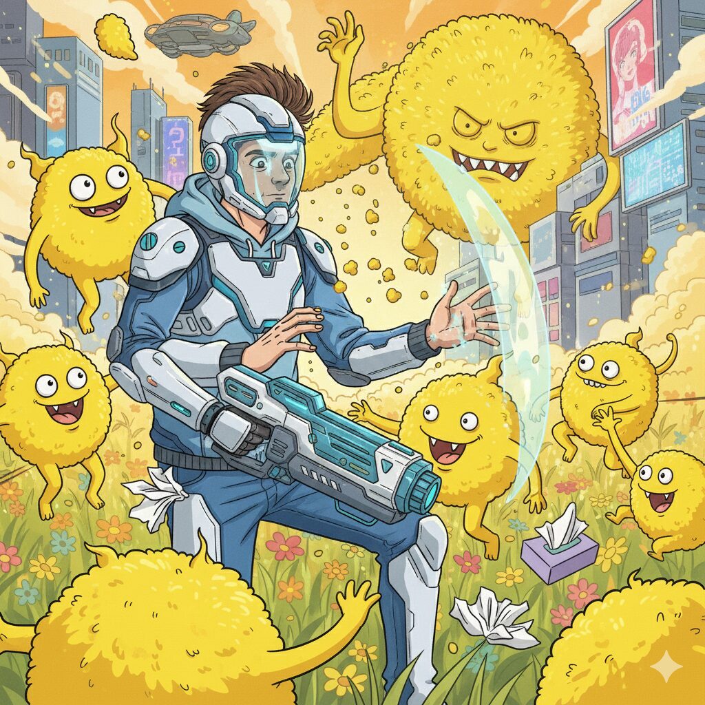 鼻水ズルズル、目がボワボワ、かゆい。喉がイガイガ。