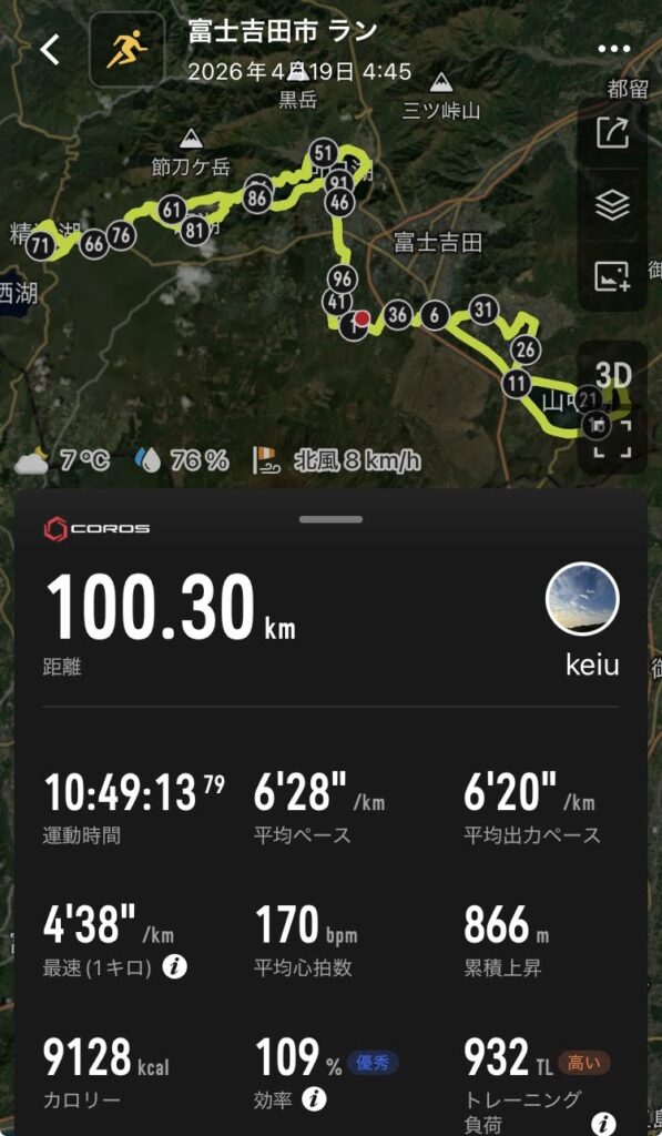 僕の100kmベストタイムは12時間8分。一気にすごい更新出来てしまった。